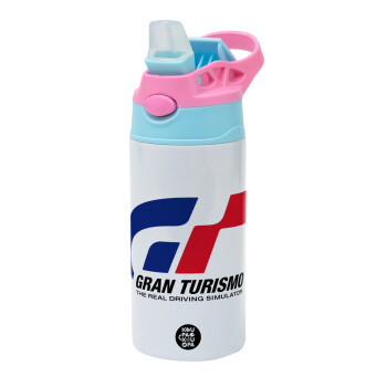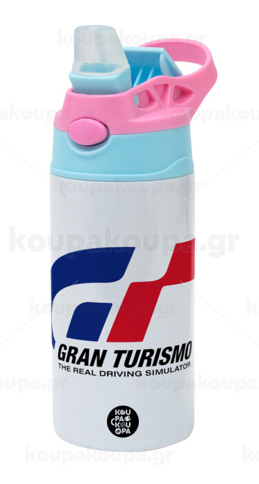 gran turismo, Children's hot water bottle, stainless steel, with safety straw, Pink/BlueCiel (360ml) BPA FREE