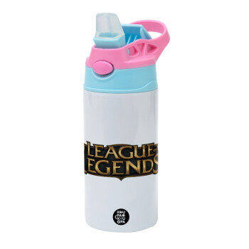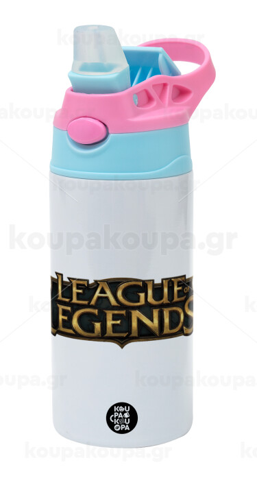 League of Legends LoL, Children's hot water bottle, stainless steel, with safety straw, Pink/BlueCiel (360ml) BPA FREE