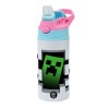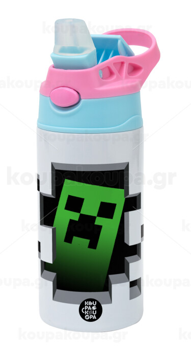 Minecraft creeper, Children's hot water bottle, stainless steel, with safety straw, Pink/BlueCiel (360ml) BPA FREE