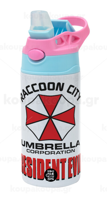 Resident Evil, Children's hot water bottle, stainless steel, with safety straw, Pink/BlueCiel (360ml) BPA FREE
