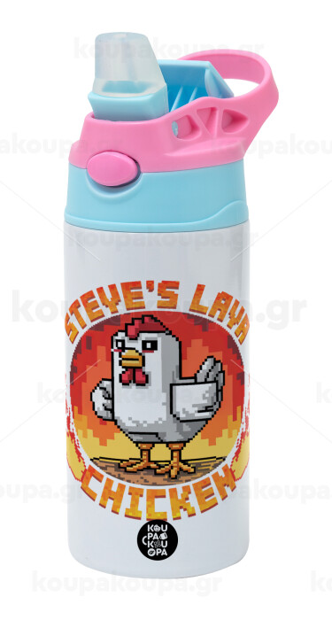 Steve's Lava Chicken, Children's hot water bottle, stainless steel, with safety straw, Pink/BlueCiel (360ml) BPA FREE