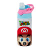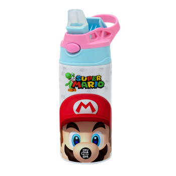 Super mario, Children's hot water bottle, stainless steel, with safety straw, Pink/BlueCiel (360ml) BPA FREE