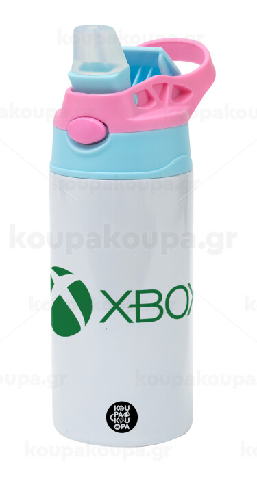 xbox, Children's hot water bottle, stainless steel, with safety straw, Pink/BlueCiel (360ml) BPA FREE