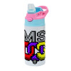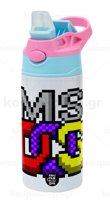 MsDos, Children's hot water bottle, stainless steel, with safety straw, Pink/BlueCiel (360ml) BPA FREE