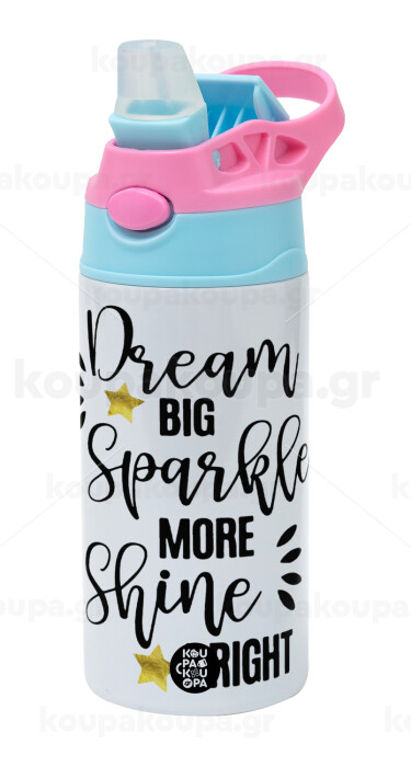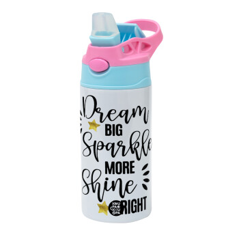 Dream big, Sparkle more, Shine bright, Children's hot water bottle, stainless steel, with safety straw, Pink/BlueCiel (360ml) BPA FREE