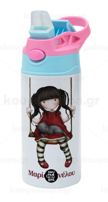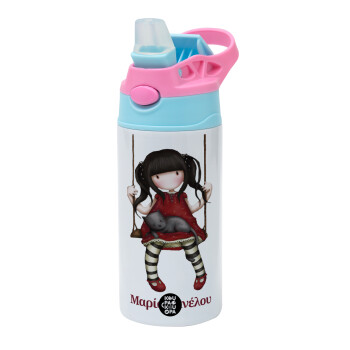Santoro, Children's hot water bottle, stainless steel, with safety straw, Pink/BlueCiel (360ml) BPA FREE
