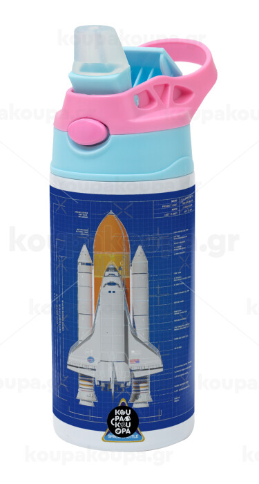 Nasa Space Shuttle, Children's hot water bottle, stainless steel, with safety straw, Pink/BlueCiel (360ml) BPA FREE