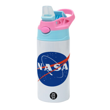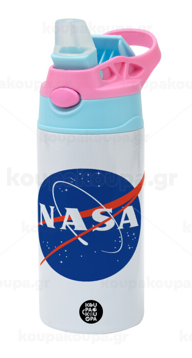 Nasa, Children's hot water bottle, stainless steel, with safety straw, Pink/BlueCiel (360ml) BPA FREE