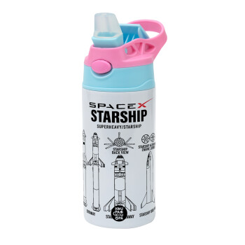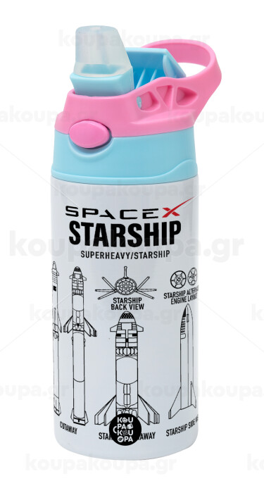 Space X, Children's hot water bottle, stainless steel, with safety straw, Pink/BlueCiel (360ml) BPA FREE