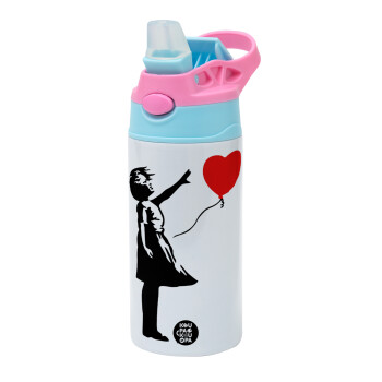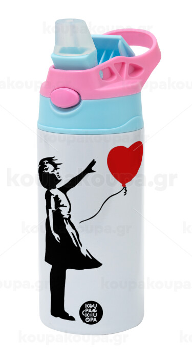 Banksy (Hope), Children's hot water bottle, stainless steel, with safety straw, Pink/BlueCiel (360ml) BPA FREE
