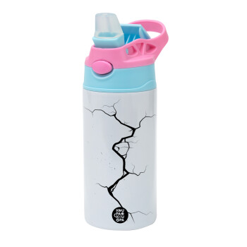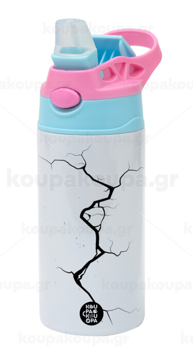 Cracked, Children's hot water bottle, stainless steel, with safety straw, Pink/BlueCiel (360ml) BPA FREE