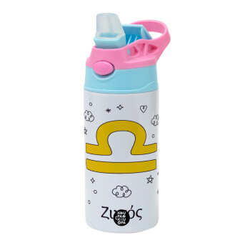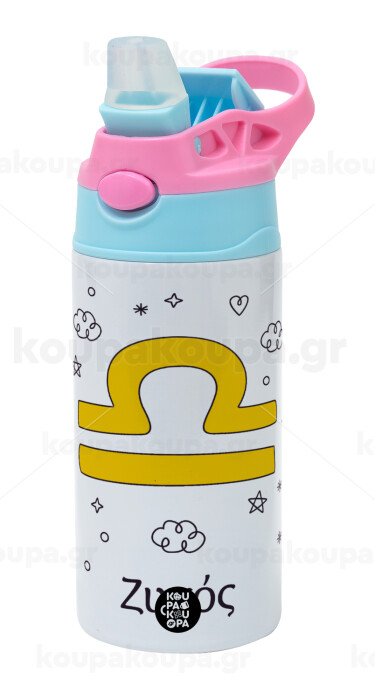 Ζώδια Ζυγός, Children's hot water bottle, stainless steel, with safety straw, Pink/BlueCiel (360ml) BPA FREE