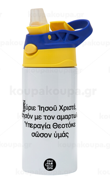 Προσευχή του Ιησού, Children's hot water bottle, stainless steel, with safety straw, green, blue (360ml) BPA FREE