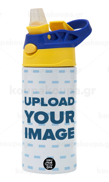 Upload your logo, Children's hot water bottle, stainless steel, with safety straw, green, blue (360ml) BPA FREE