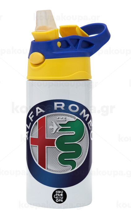 Alfa Romeo, Children's hot water bottle, stainless steel, with safety straw, green, blue (360ml) BPA FREE