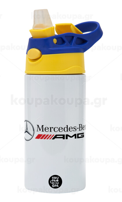 AMG Mercedes, Children's hot water bottle, stainless steel, with safety straw, green, blue (360ml) BPA FREE