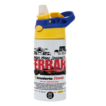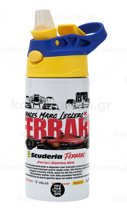 F1 Ferrari, Children's hot water bottle, stainless steel, with safety straw, green, blue (360ml) BPA FREE