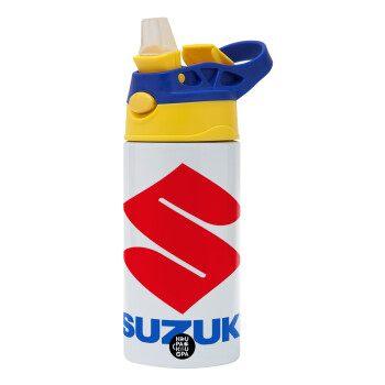 SUZUKI, Children's hot water bottle, stainless steel, with safety straw, green, blue (360ml) BPA FREE