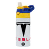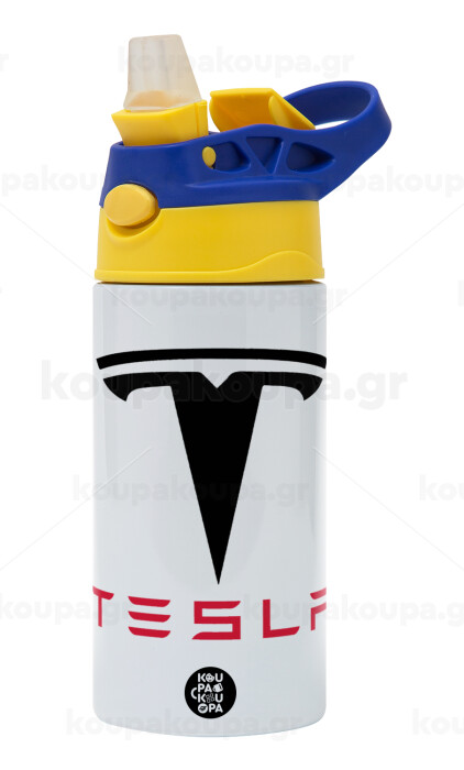 Tesla motors, Children's hot water bottle, stainless steel, with safety straw, green, blue (360ml) BPA FREE