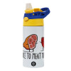 Nice to MEAT you, Children's hot water bottle, stainless steel, with safety straw, green, blue (360ml) BPA FREE
