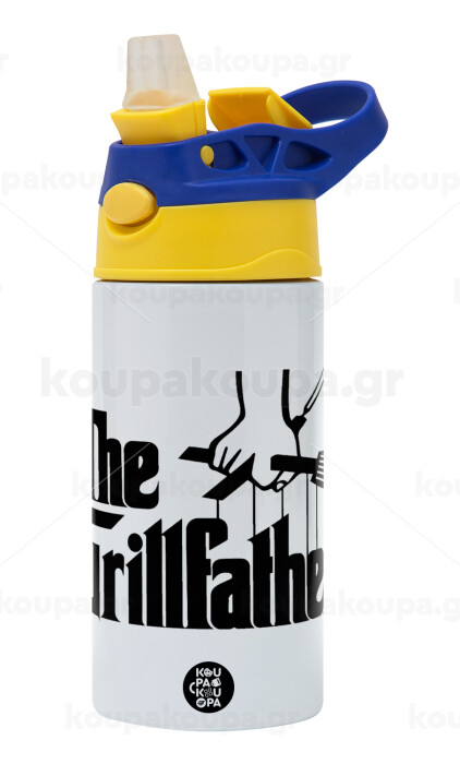 The Grill Father, Children's hot water bottle, stainless steel, with safety straw, green, blue (360ml) BPA FREE