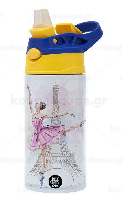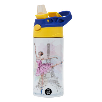 Ballerina in Paris, Children's hot water bottle, stainless steel, with safety straw, green, blue (360ml) BPA FREE