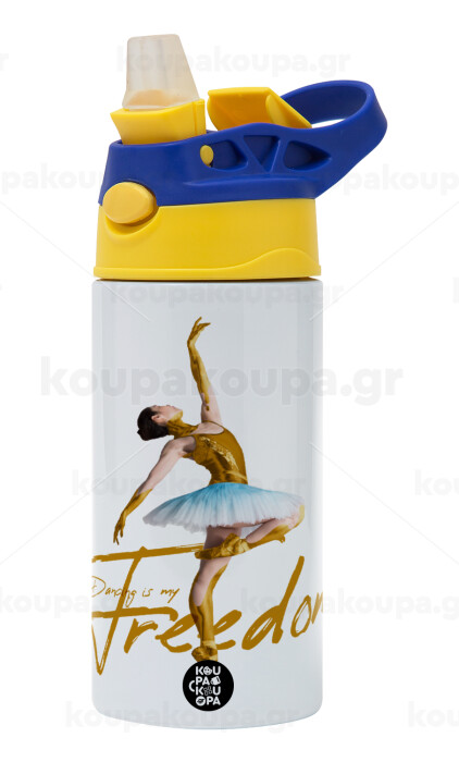 Gold Dancer, Children's hot water bottle, stainless steel, with safety straw, green, blue (360ml) BPA FREE