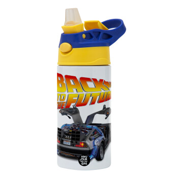 Back to the future, Children's hot water bottle, stainless steel, with safety straw, green, blue (360ml) BPA FREE