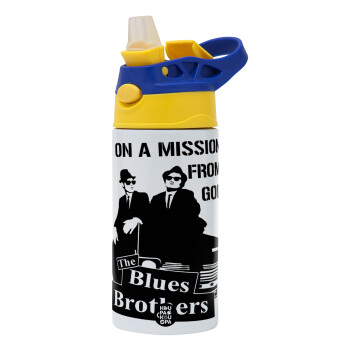 Blues brothers on a mission from God, Children's hot water bottle, stainless steel, with safety straw, green, blue (360ml) BPA FREE