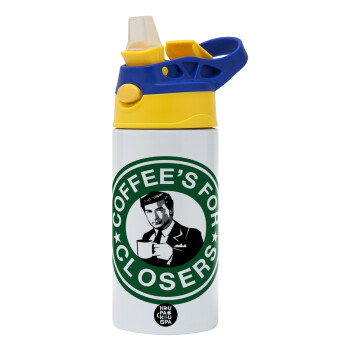 Coffee's for closers, Children's hot water bottle, stainless steel, with safety straw, green, blue (360ml) BPA FREE