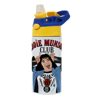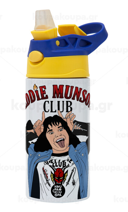 Eddie Munson, Children's hot water bottle, stainless steel, with safety straw, green, blue (360ml) BPA FREE