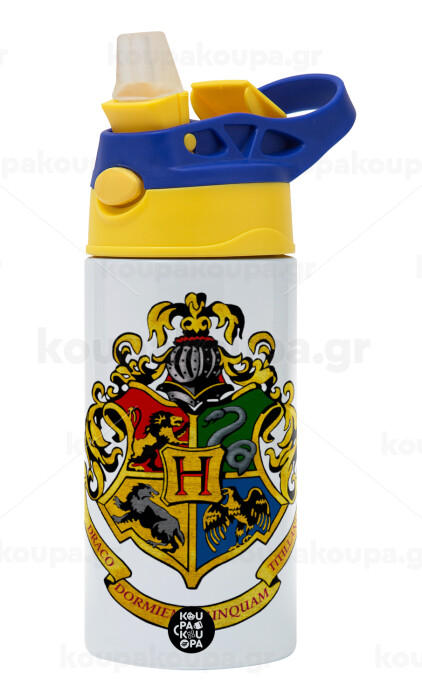 Hogwart's, Children's hot water bottle, stainless steel, with safety straw, green, blue (360ml) BPA FREE