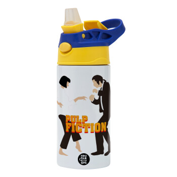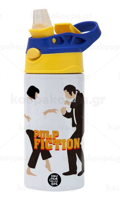 Pulp Fiction dancing, Children's hot water bottle, stainless steel, with safety straw, green, blue (360ml) BPA FREE