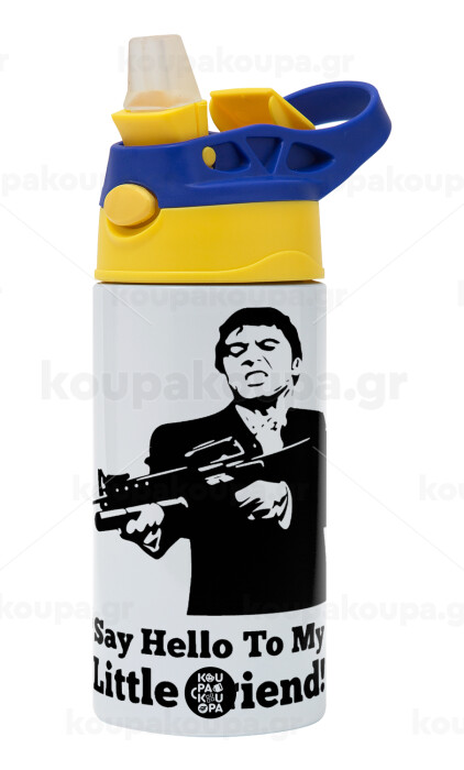 Scarface, Children's hot water bottle, stainless steel, with safety straw, green, blue (360ml) BPA FREE