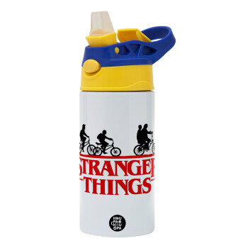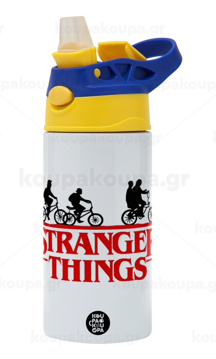 Stranger Things red, Children's hot water bottle, stainless steel, with safety straw, green, blue (360ml) BPA FREE