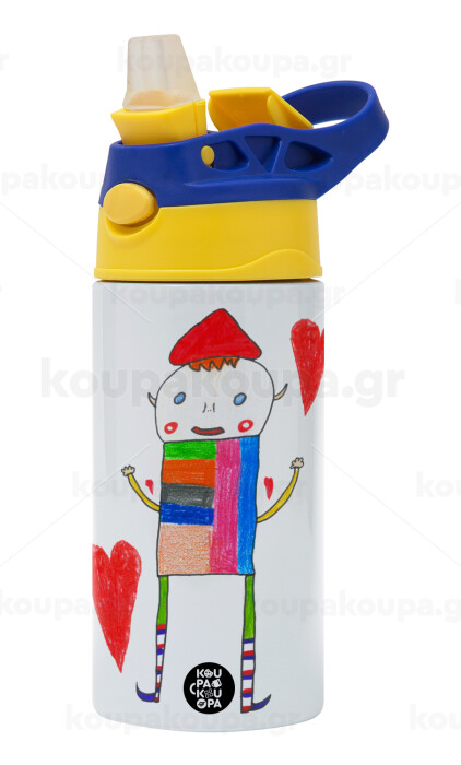 Ο Αλέξανδρος ζωγραφίζει την Αγάπη, Children's hot water bottle, stainless steel, with safety straw, green, blue (360ml) BPA FREE