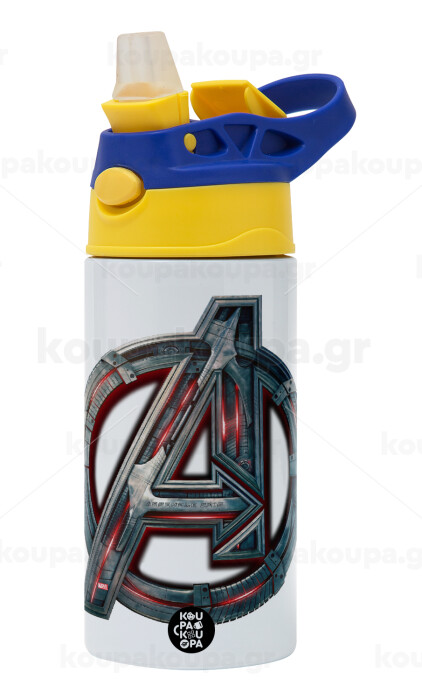 Avengers, Children's hot water bottle, stainless steel, with safety straw, green, blue (360ml) BPA FREE