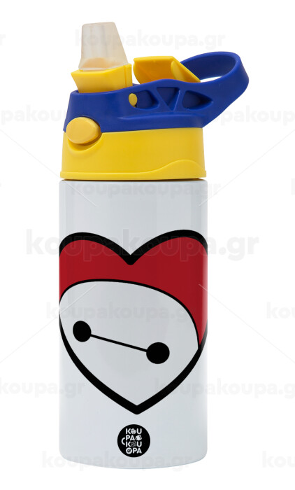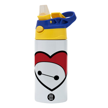 Baymax heart, Children's hot water bottle, stainless steel, with safety straw, green, blue (360ml) BPA FREE