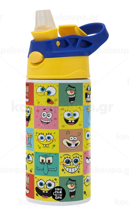 BOB spongebob and friends, Children's hot water bottle, stainless steel, with safety straw, green, blue (360ml) BPA FREE