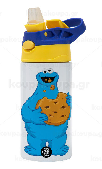 Cookie Monster, Children's hot water bottle, stainless steel, with safety straw, green, blue (360ml) BPA FREE