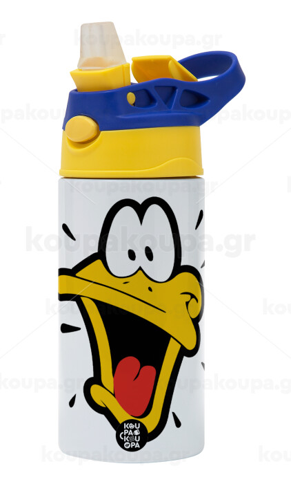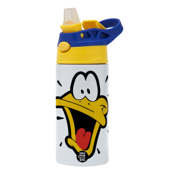 Daffy Duck, Children's hot water bottle, stainless steel, with safety straw, green, blue (360ml) BPA FREE