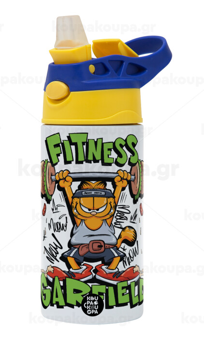 Garfield Fitness, Children's hot water bottle, stainless steel, with safety straw, green, blue (360ml) BPA FREE