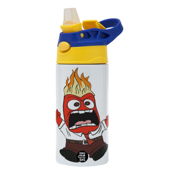Inside Out Angry, Children's hot water bottle, stainless steel, with safety straw, green, blue (360ml) BPA FREE