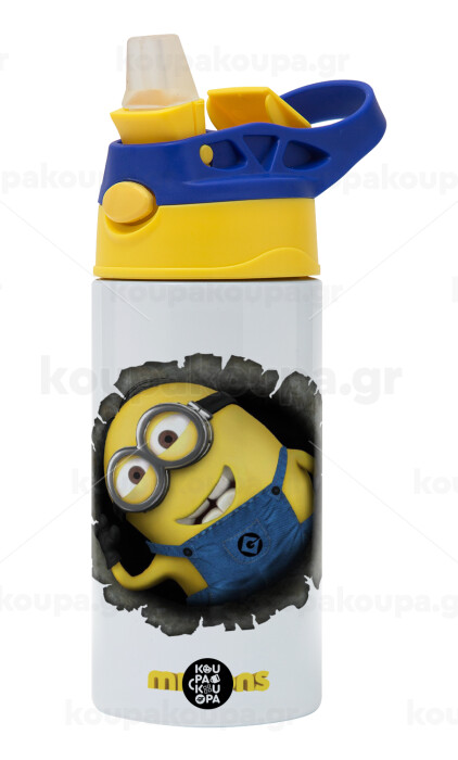 Minions hi, Children's hot water bottle, stainless steel, with safety straw, green, blue (360ml) BPA FREE