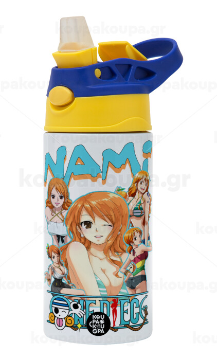 Nami One Piece, Children's hot water bottle, stainless steel, with safety straw, green, blue (360ml) BPA FREE