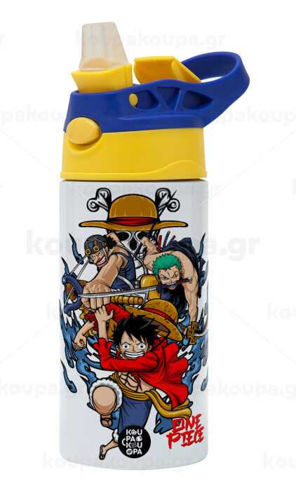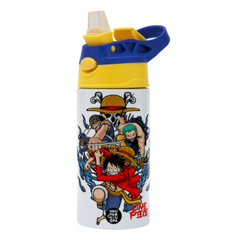 One Piece, Children's hot water bottle, stainless steel, with safety straw, green, blue (360ml) BPA FREE