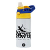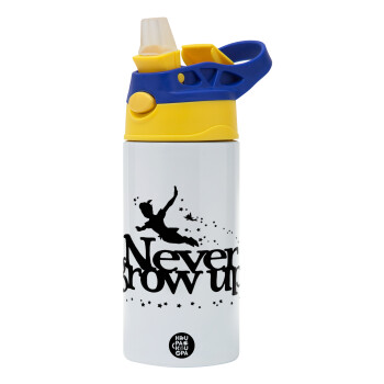 Peter pan, Never Grow UP, Children's hot water bottle, stainless steel, with safety straw, green, blue (360ml) BPA FREE