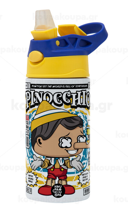 Pinocchio, Children's hot water bottle, stainless steel, with safety straw, green, blue (360ml) BPA FREE