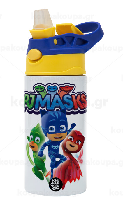 PJ masks, Children's hot water bottle, stainless steel, with safety straw, green, blue (360ml) BPA FREE