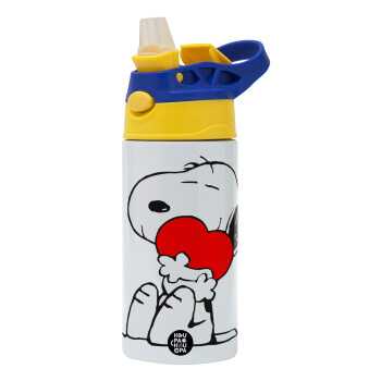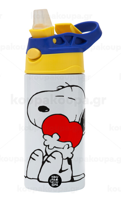 Snoopy, Children's hot water bottle, stainless steel, with safety straw, green, blue (360ml) BPA FREE